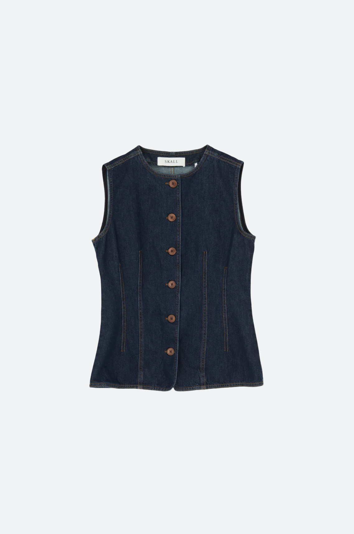 Die Tammy Weste ist eine Weste im Workwear-Stil mit Rundkragen und ohne Ärmel. Sie ist mit Doppelnaht, Abnähern und Knöpfen vorne körperbetont geschnitten. Die Weste besteht aus 100 % Bio-Baumwolle.