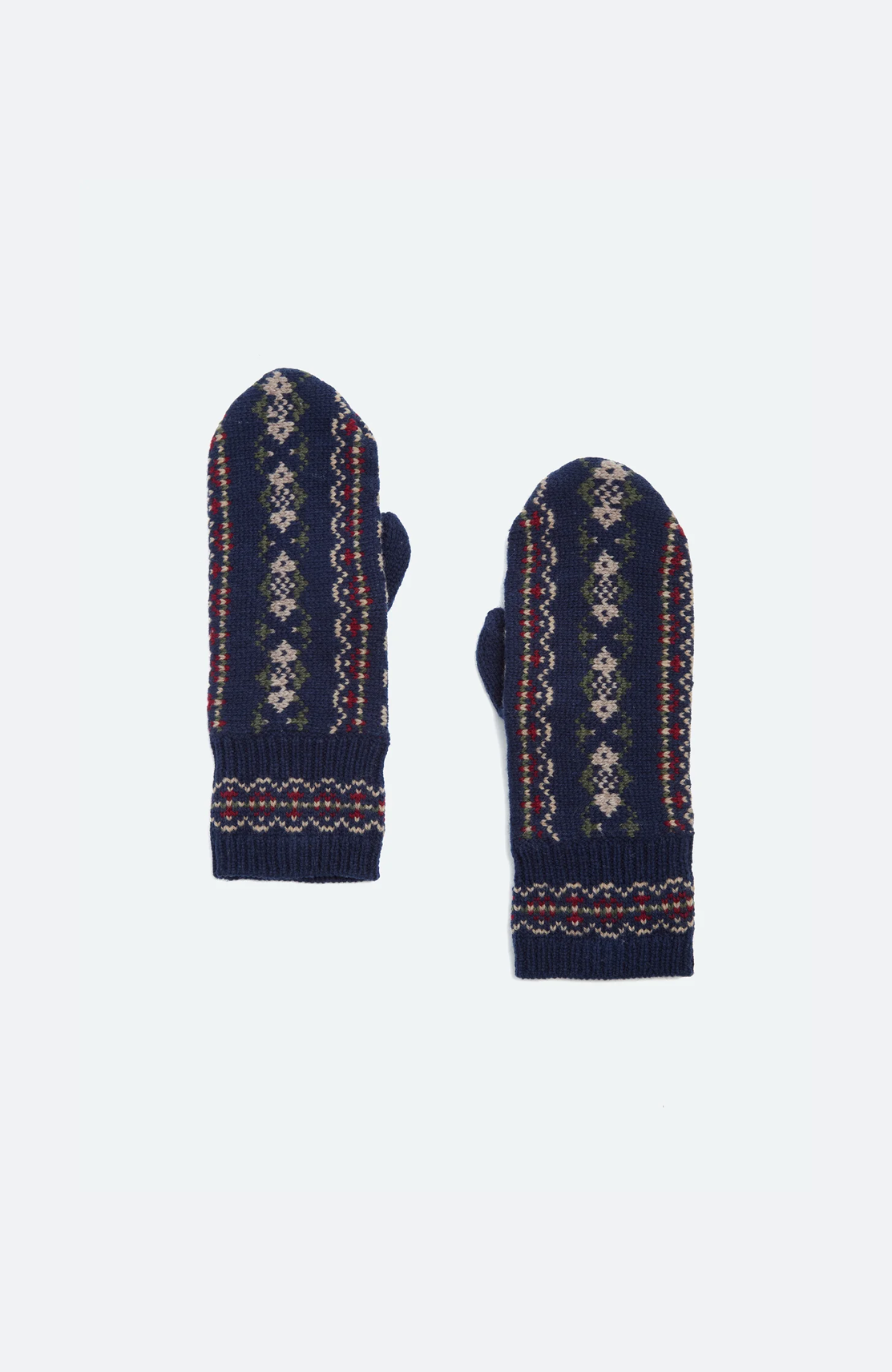 Die Ciara-Fäustlinge aus Jacquard-Strick mit klassischem Fair-Isle-Muster sind das perfekte Accessoire für kalte Tage.