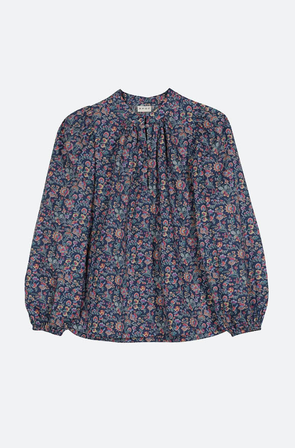Audrey Kazusa verbindet Vintage-Romantik mit künstlerischem Flair. Ihr filigraner Kazusa-Blumendruck von Liberty sorgt für einen lebendigen und eleganten Look. Die zarten Raffungen an den Schultern und die weiche, abgerundete Silhouette verleihen dem Kleid eine feminine und lässige Note – ein Stil, der sowohl für den Alltag als auch für besondere Anlässe geeignet ist.