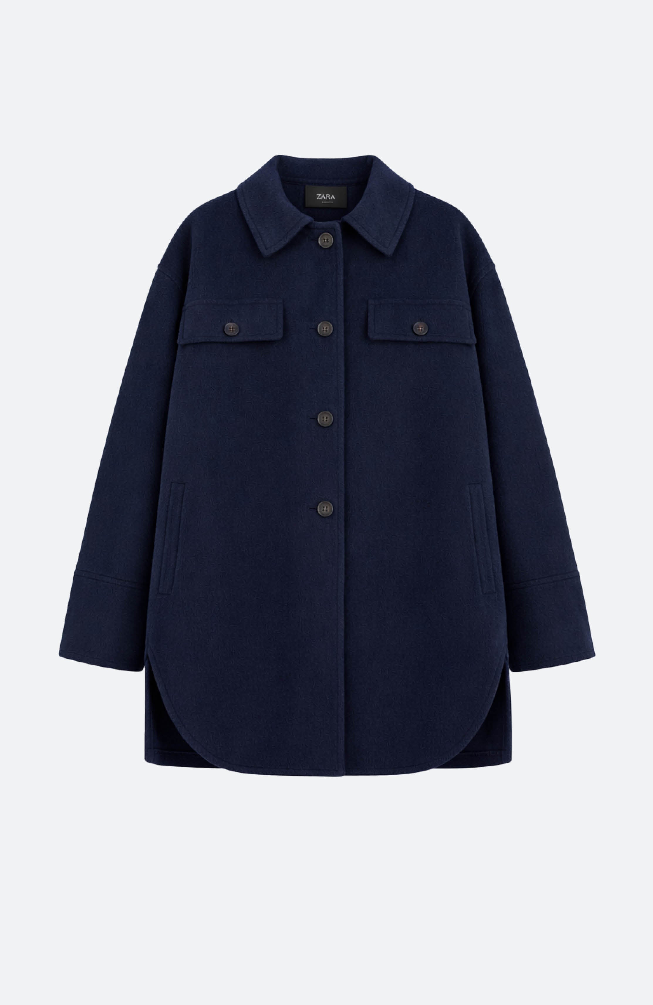 Diese dunkelblaue Wolljacke für Damen steht für Qualität, Langlebigkeit und zeitlose Ästhetik – perfekt für einen modernen, reduzierten Look.
