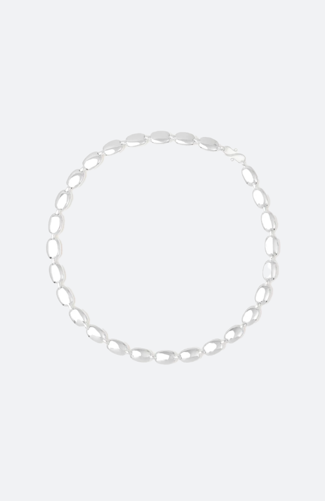 Die Monica-Halskette ist ein echter Hingucker – ob solo oder in Kombination mit anderen Schmuckstücken. Ihre skulpturalen, ovalen Glieder spiegeln die kühne Eleganz des Monica-Armbands wider. Zusammen ergeben sie einen stimmigen und durchdachten Look. Ein Klassiker mit dem gewissen Etwas, der selbst schlichte Outfits mühelos aufwertet.