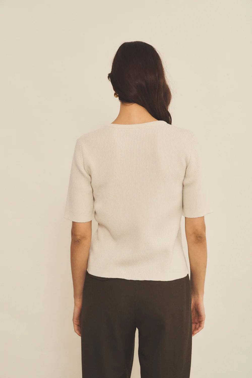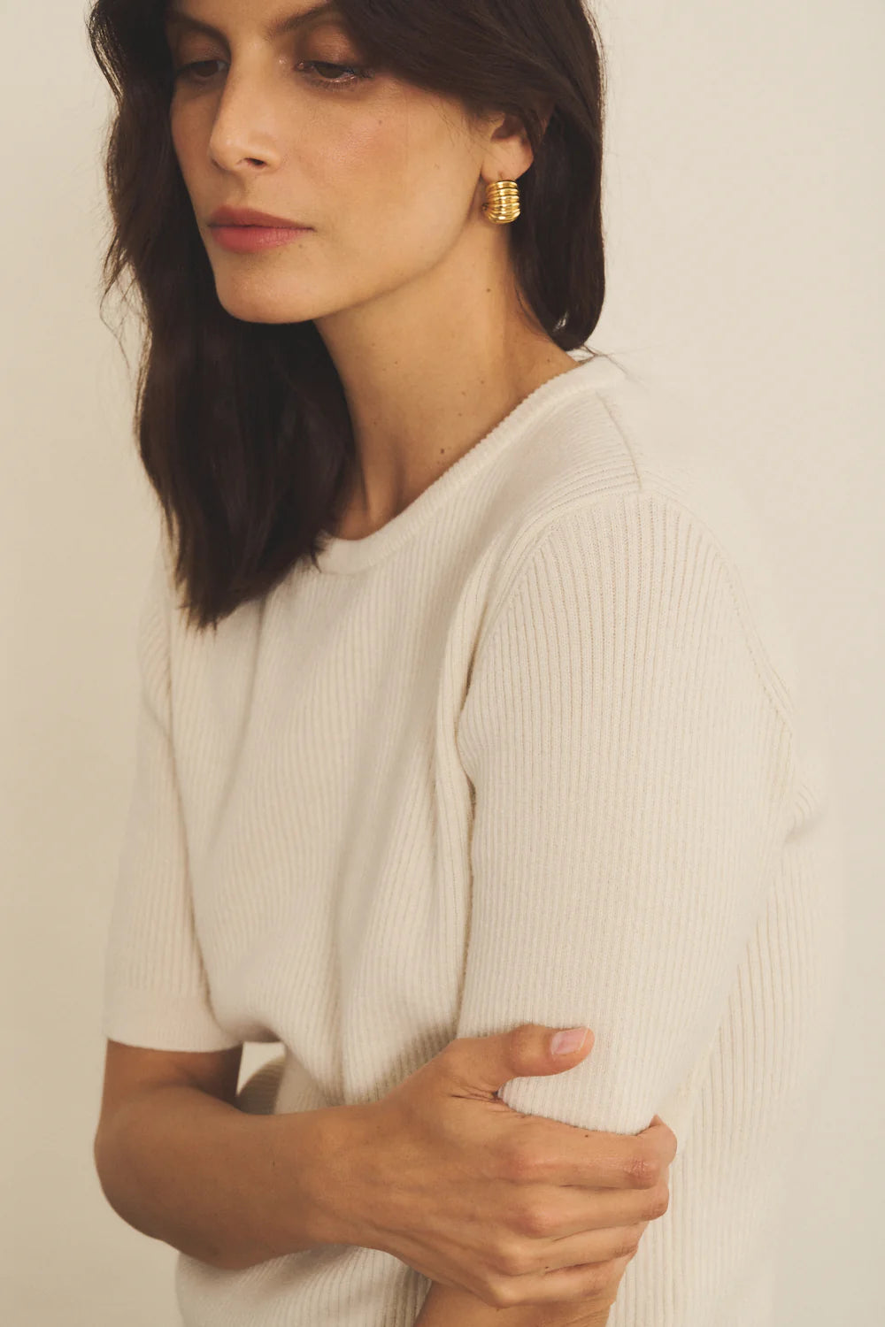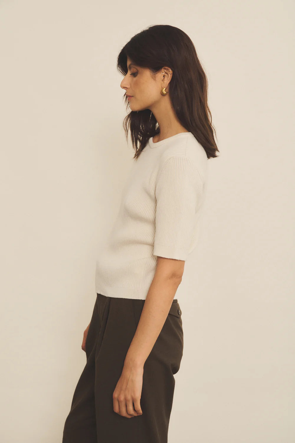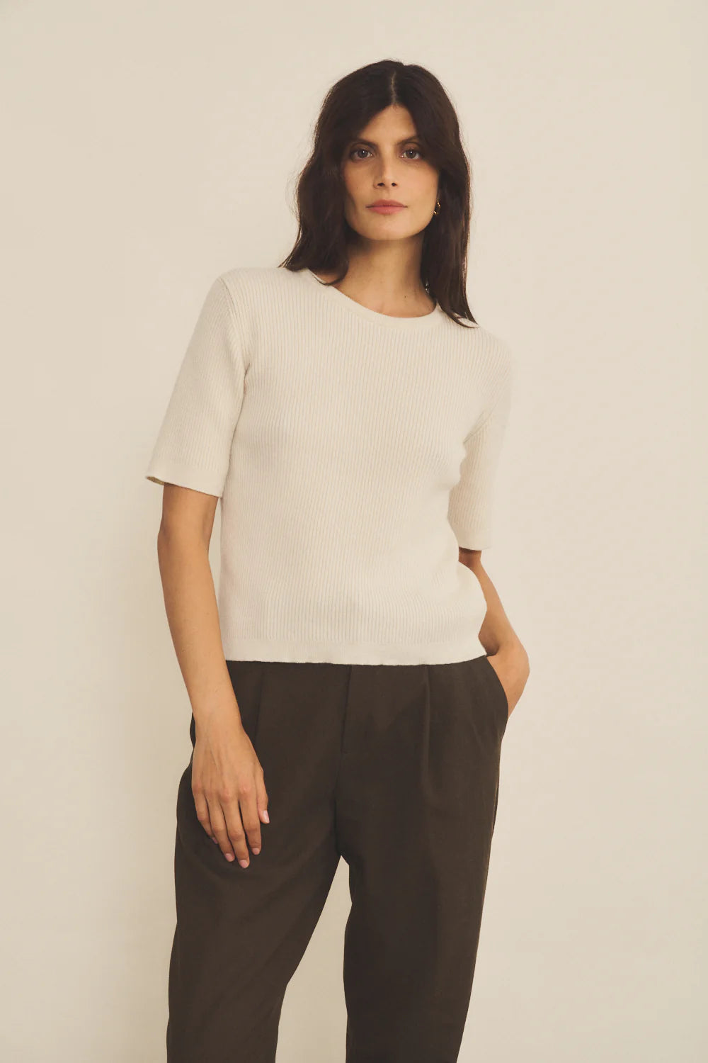 Der feine 2x2-Rippstrick unterstreicht die hochwertige Verarbeitung und sorgt für eine angenehme Struktur. Die kurzen, eingesetzten Ärmel, die oberhalb des Ellbogens enden, machen das Kaschmir-T-Shirt zu einem vielseitigen Essential für jede Jahreszeit. Gestrickt aus zwei Garnen der exklusiven Qualität „Malmö“, steht das Mélanie Tee-Shirt für langlebige Qualität und zeitlose Eleganz.