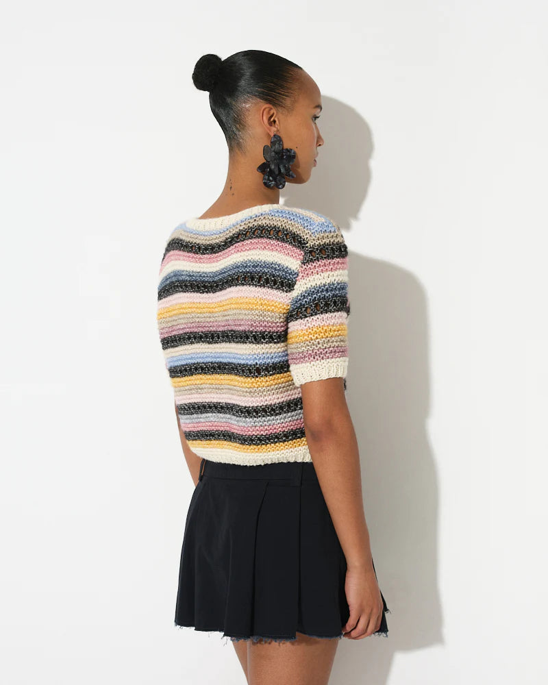 Gestreifter Kurzarm Pulli aus Baumwolle/Merino | MAIAMI | LITTLE DEPARTMENT STORE – Little Department Store
