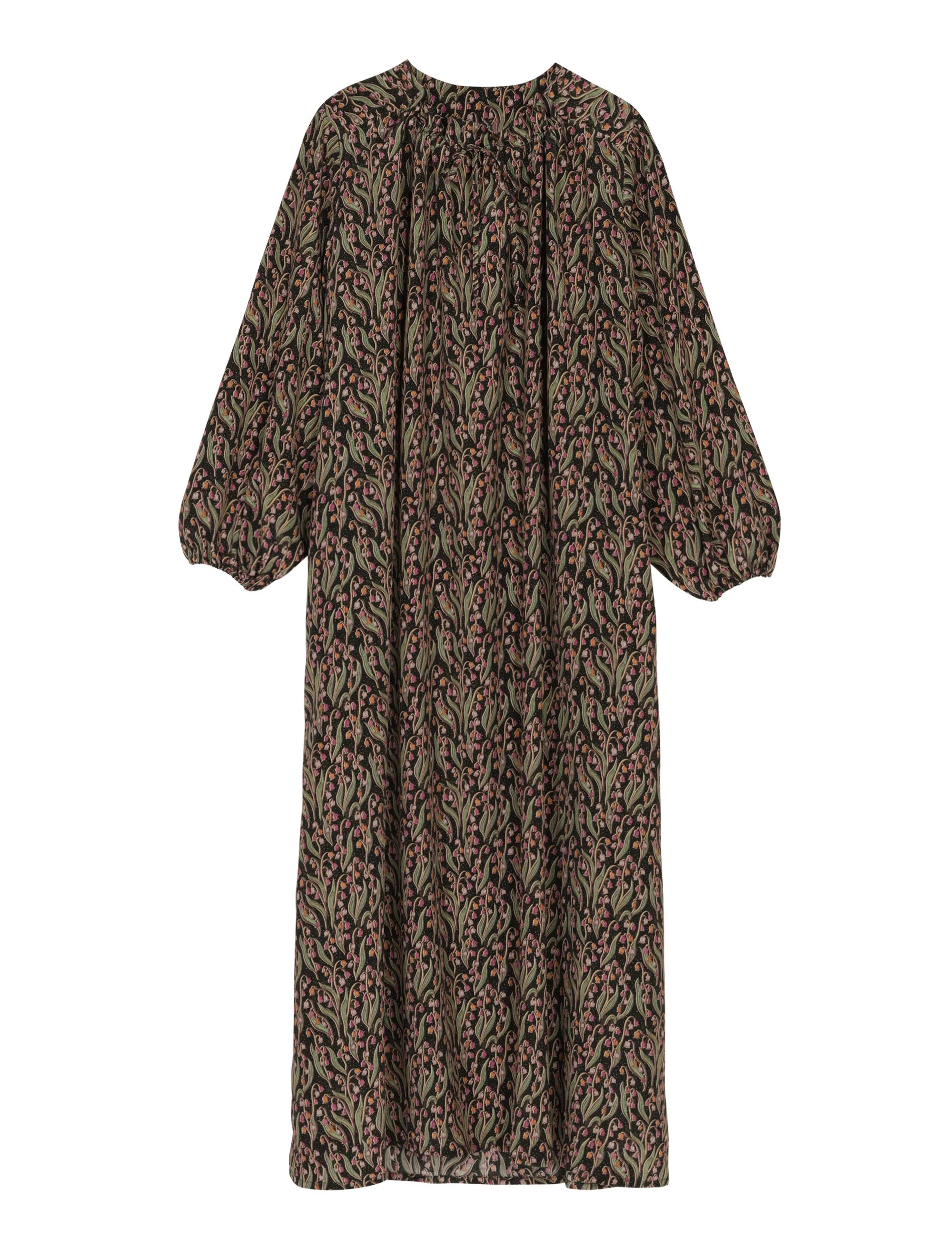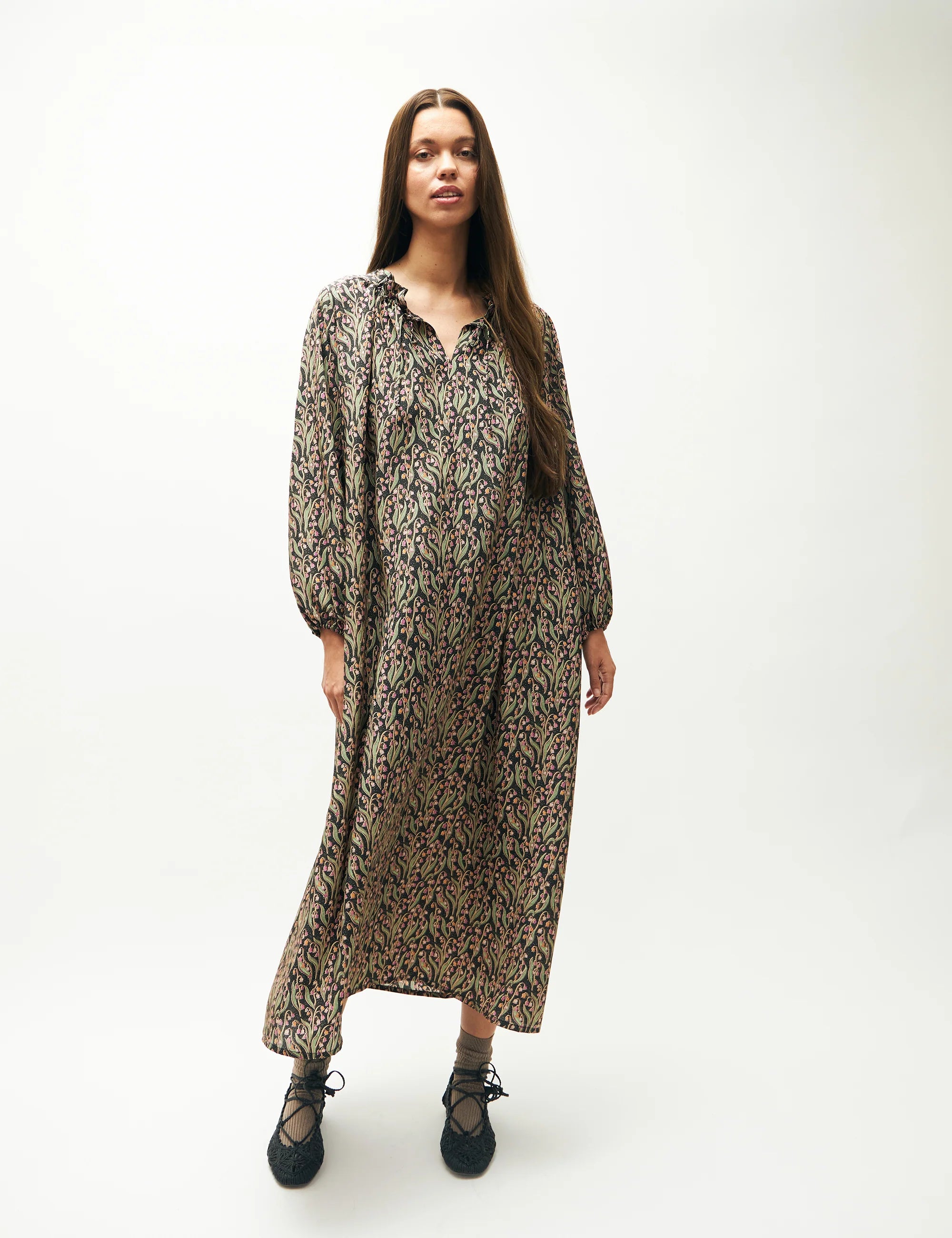 Das IVORY Kleid aus 100 % Seide ist ein leichtes und elegantes Modell mit entspannter Passform, gerippten Details und einem Taillenband. Ein raffinierter Favorit mit poetischem Print – weich, luftig und mühelos schick für den Alltag und elegante Anlässe.