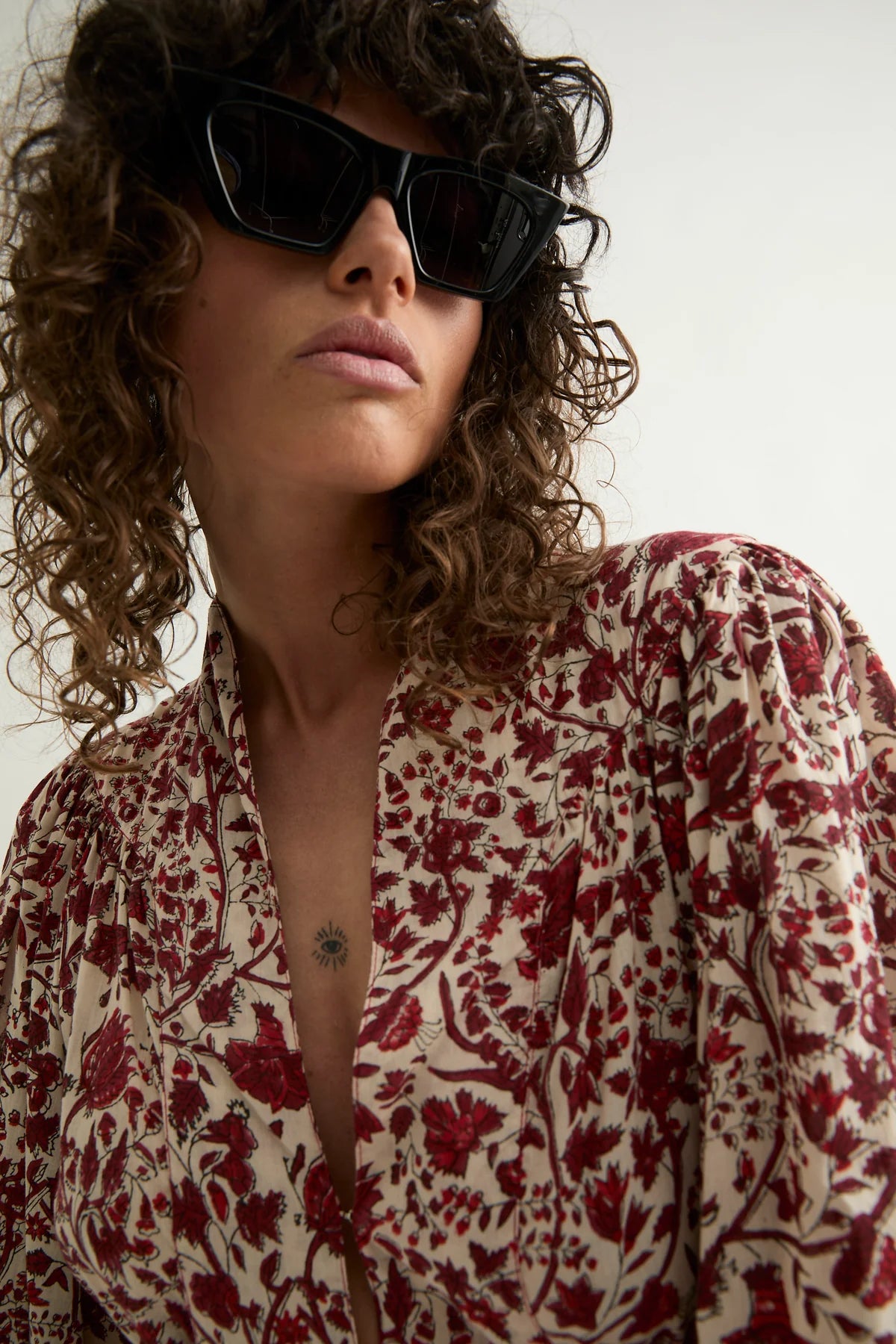 Das Model ist 179 cm groß, hat einen Brustumfang von 83 cm, einen Taillenumfang von 60 cm und trägt Größe 38.