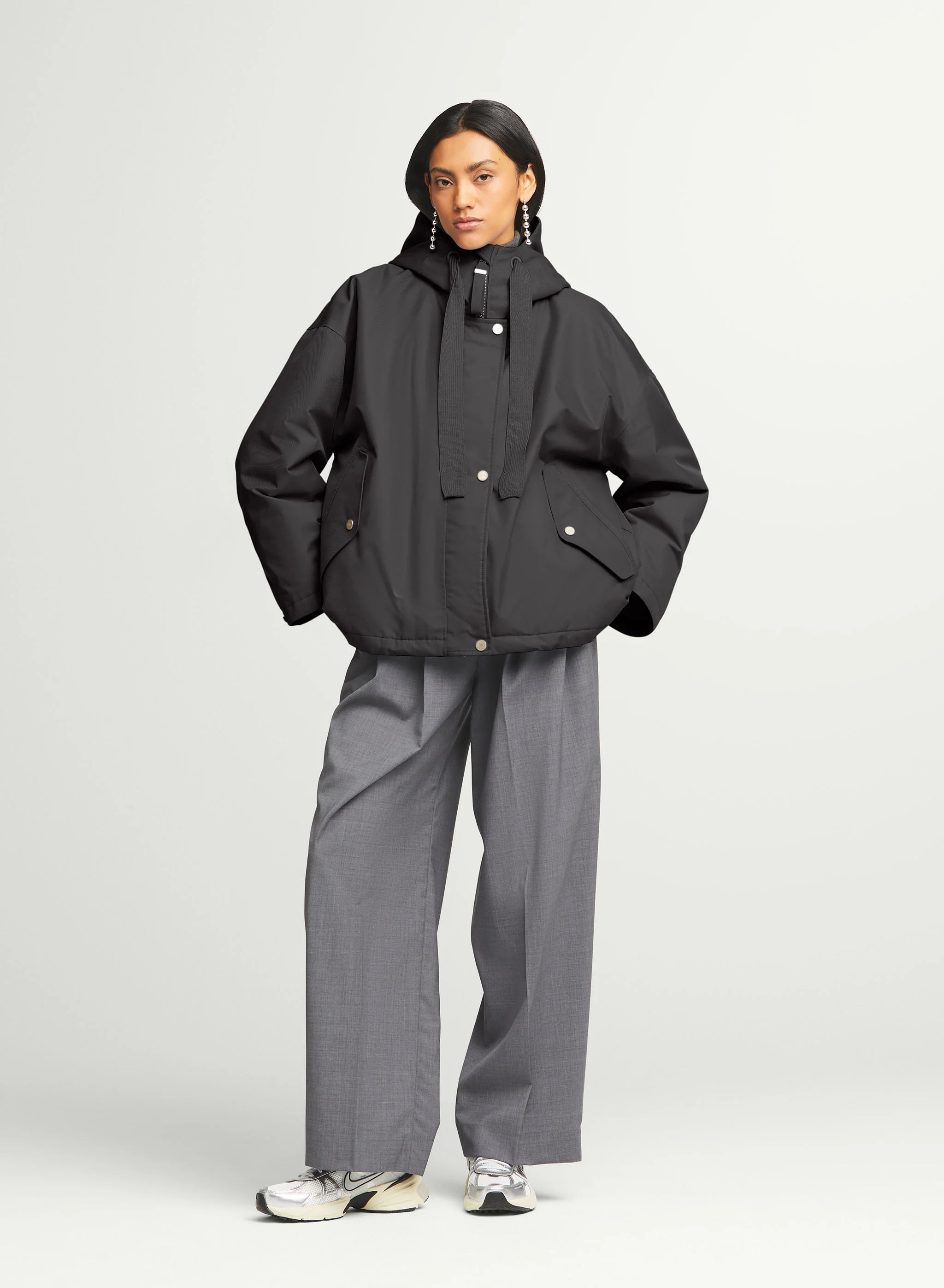- Hüftlange Boxy-Jacke mit Kapuze